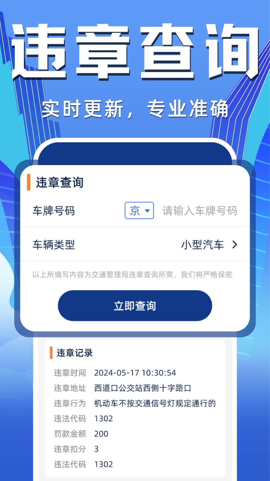 2、为车主提供便利的违章查询工具,及时了解自己的车辆违章情况。