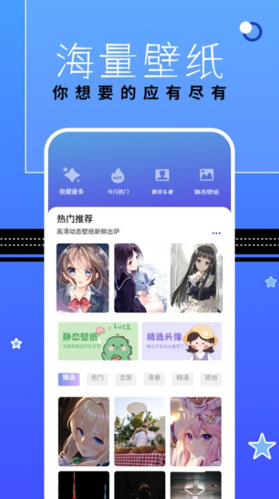 3、风格多样,随时随地都可以在线设置你喜欢的主题壁纸和头像。