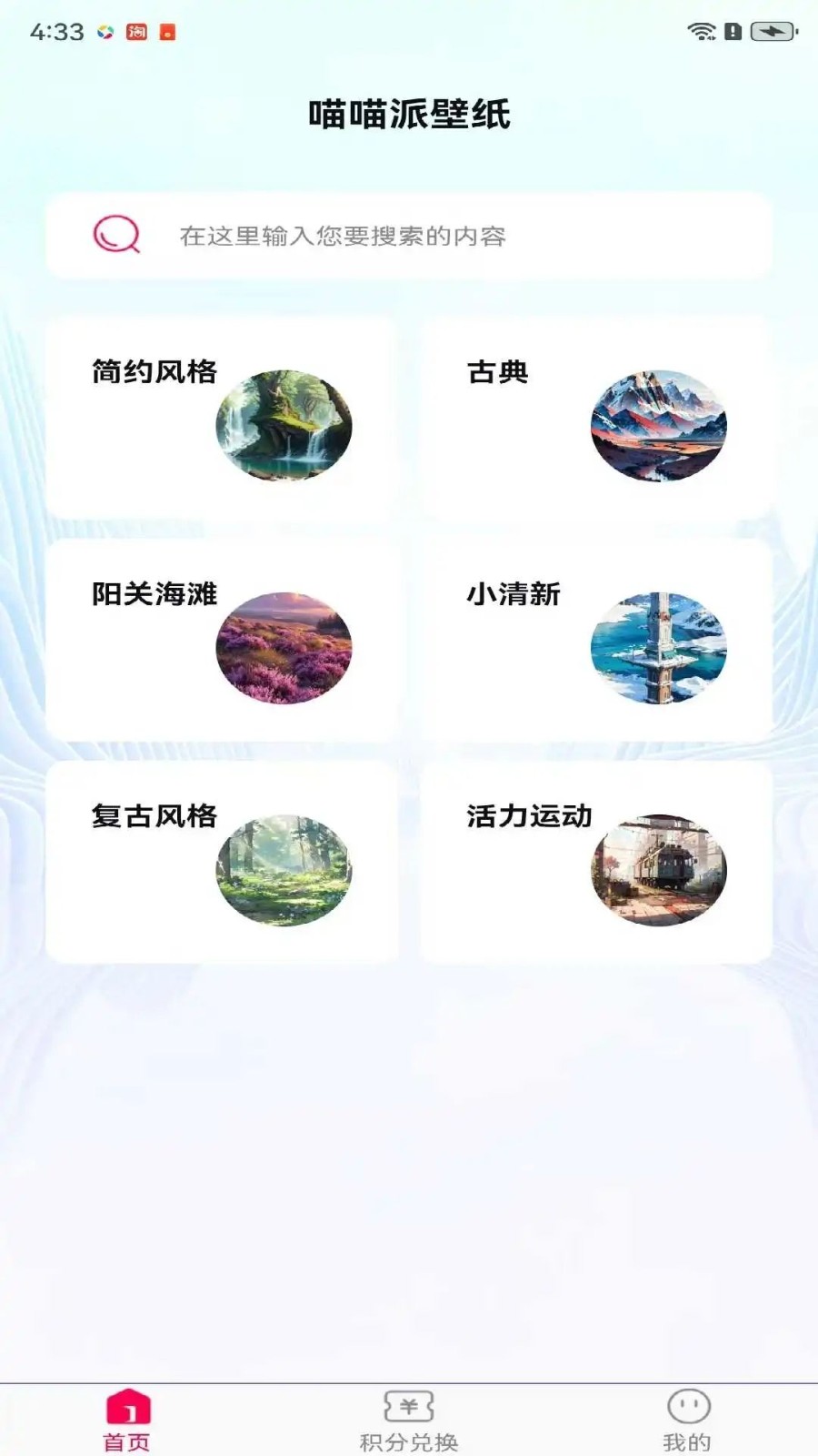 喵喵派壁纸是一款非常好用的手机壁纸软件,这里面的壁纸资源非常的丰富,你喜欢的都能轻松寻找到,一键轻松下载,满足你的需求,并且喵喵派壁纸是能随时分享给好用的,所有的壁纸都是免费的,软件内功能齐全,用户还能发挥自己想象力在这创造属于自己的壁纸哦!