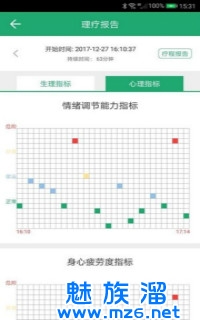 2.根据心率计算心血管预警指标、情绪调节能力指标、身心疲劳度指标、心理健康预警指标,理疗结束后生成报告。