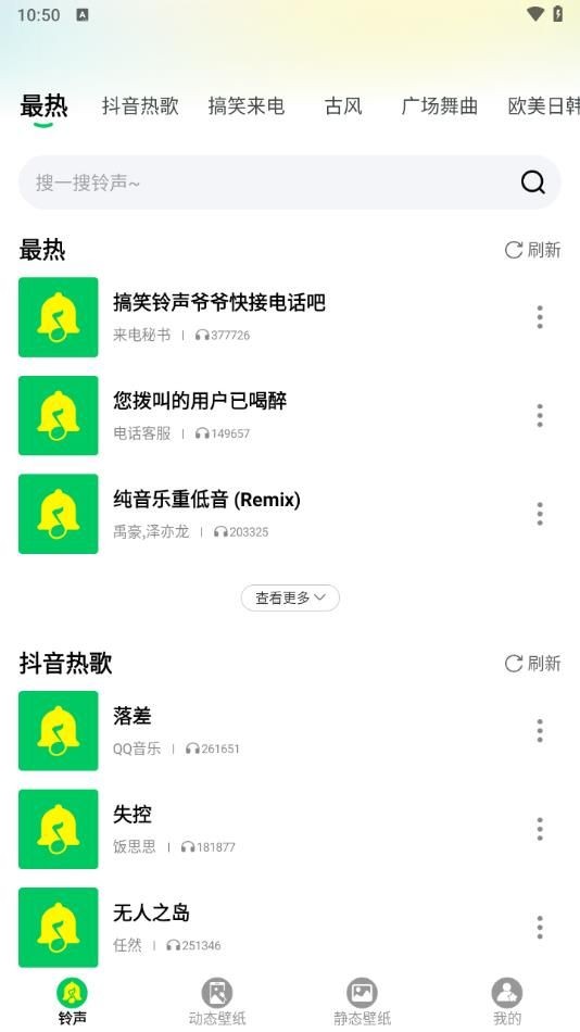 免费铃声快app最新版是一款超好用的铃声资源类手机软件,平台汇集了丰富的音乐资源和各种风格的音频让用户去进行选择,简单的操作就可以直接进行手机铃声的设置,还有各种优美的壁纸内容可以进行个性化设置,体验各种有趣的操作玩法!