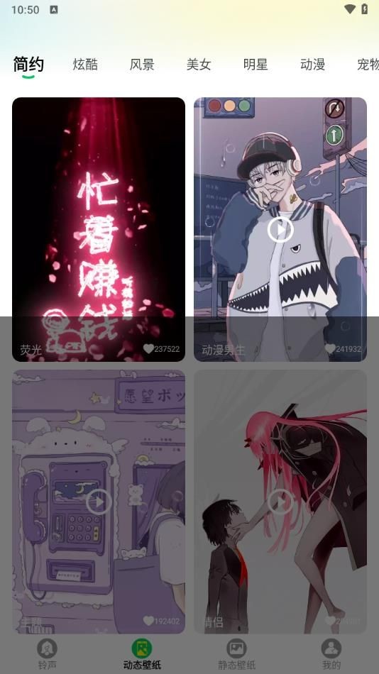 1、动态壁纸,秀出个性,各种各样的壁纸美图,直接欣赏。