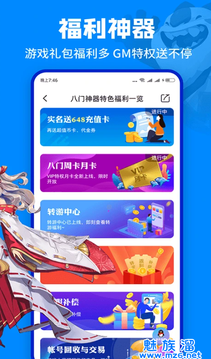 2、八门神器还会保持每天更新当下热门传奇、仙侠、魔幻、修真、卡牌、三国等BT游戏
