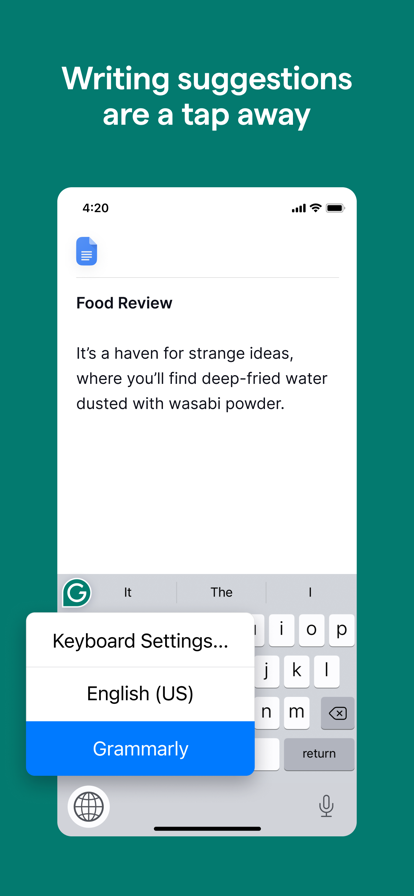 1、只需下载Grammarly应用程序并在键盘设置中启用Grammarly。