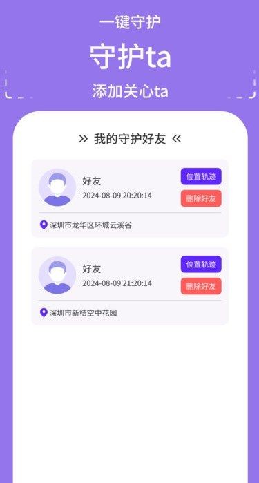 秘探追踪守护软件带来给各位朋友,该软件的操作非常方便轻松,点击既可直接使用,这里面可以相互分享对方位置,可以帮助快速查看实时位置,让你可以为对方保驾护航。秘探追踪守护软件是免费使用的,全程没有任何限制,每一位朋友都能放心游玩,且该软件界面清晰简约,能给你超舒适体验!