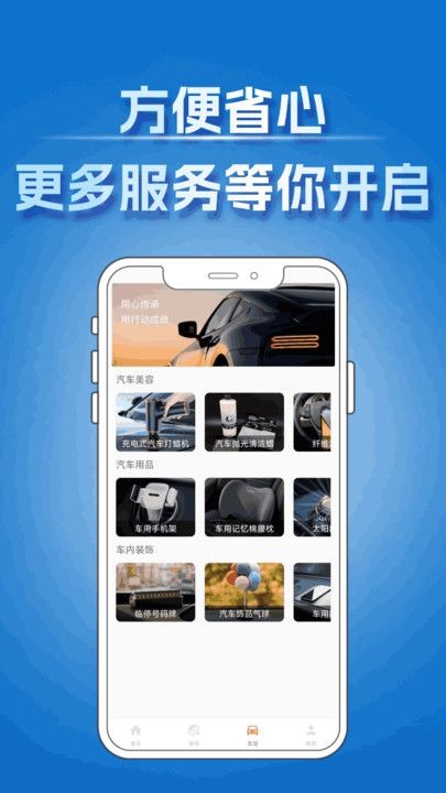 车主常用工具集成:提供汽车美容、汽车用品、汽车装饰、优惠加油站查找、洗车养护等多种实用功能。