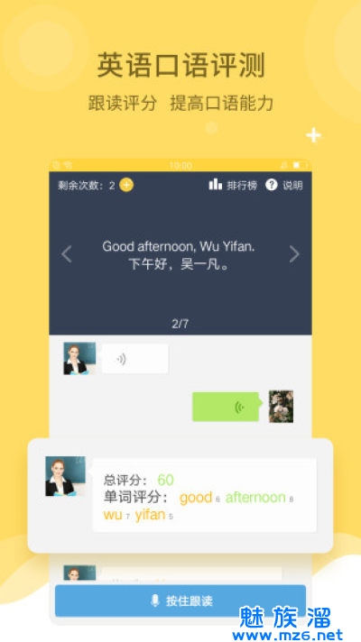 跟读评测:AI智能评分,纠正、讲解孩子发音问题,口语提高听得见。
