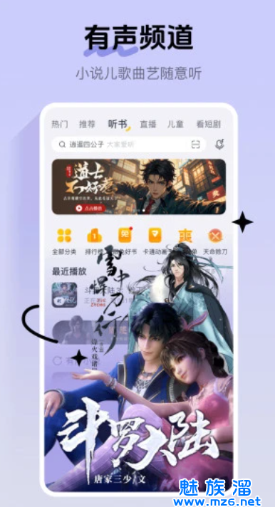 斗罗大陆、大主宰、特工皇妃楚乔转等热门电子书、漫画重磅呈现,边听边看更精彩