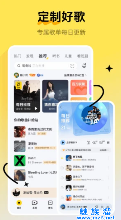 该软件运用世界最新的技术,为用户提供实时更新的海量曲库、一点即播的速度、完美的音画质量和一流的MV、K歌服务,是最贴合中国用户使用习惯、功能最全面、应用最强大的正版化网络音乐平台。以及国际前沿的音频技术和高性价比音乐硬件产品,持续致力为用户提供个性化、多元化的音乐体验。