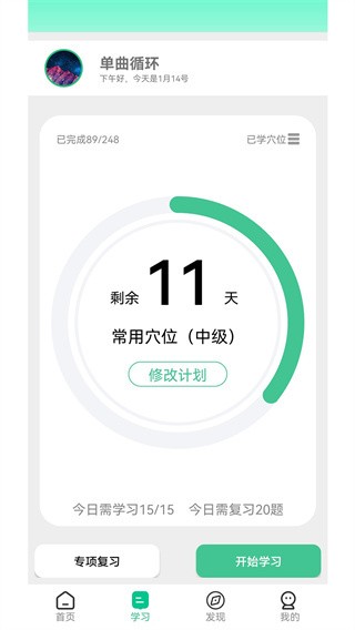 1、学习功能中,有固定的学习和用户可自定义的学习,能有效满足各种学习情况需求;