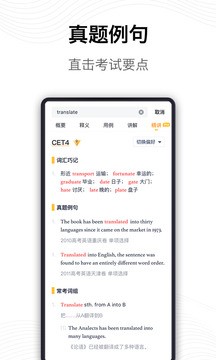 2、根据考纲制定每个单词应用详解,包括真题讲解等;独创智能饼图释义还为用户提供了更为直观的使用参考。