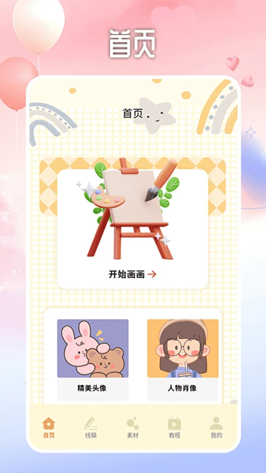 1、首页有各种绘画板块去选择,根据自己的需求去开启绘画创作。