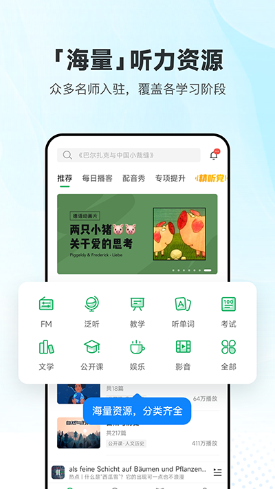 1.支持用户下载听力资源,方便用户后续进行学习使用,离线也能听。