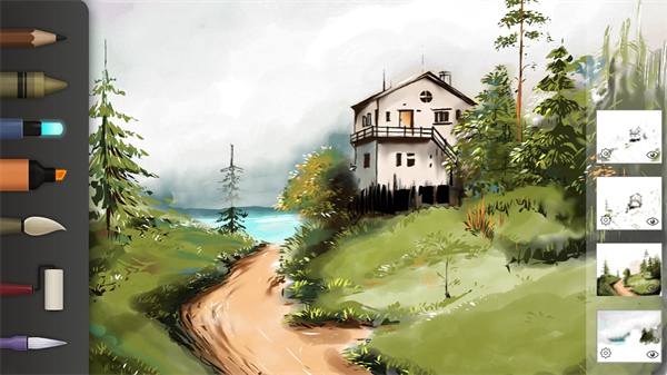 3.拥有多种笔触可以选择,用户可以绘画出素描、彩笔画等。