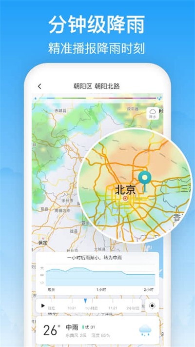 3.拥有分钟级别的降雨提示,为用户下雨做好提前的准备工作。