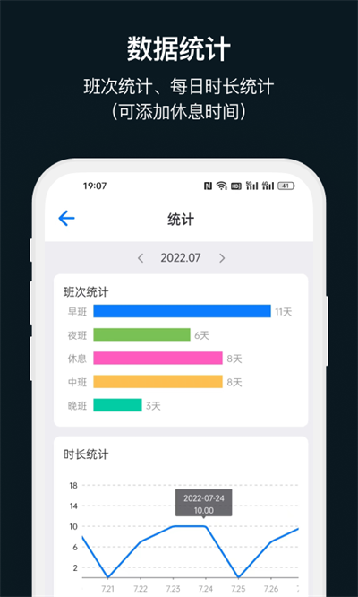 3.拥有智能闹钟,自动设置排班时间,也可以自行更改时间信息。
