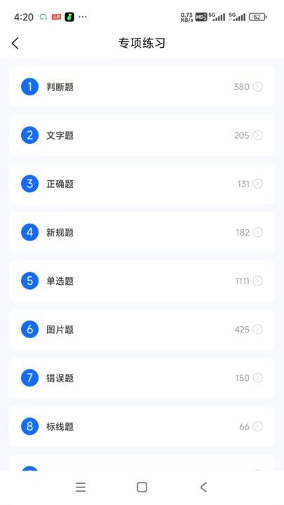1、全面丰富的题库类型,如新规题目数量、单选数量、图片数量等。
