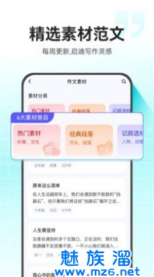 3、素材库,提供各类作文素材和范文,满足用户不同需求,激发写作灵感。