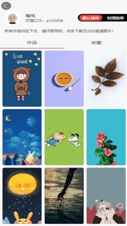 2、有作品展示区域,展示了不同作者的壁纸作品,图片多样化。