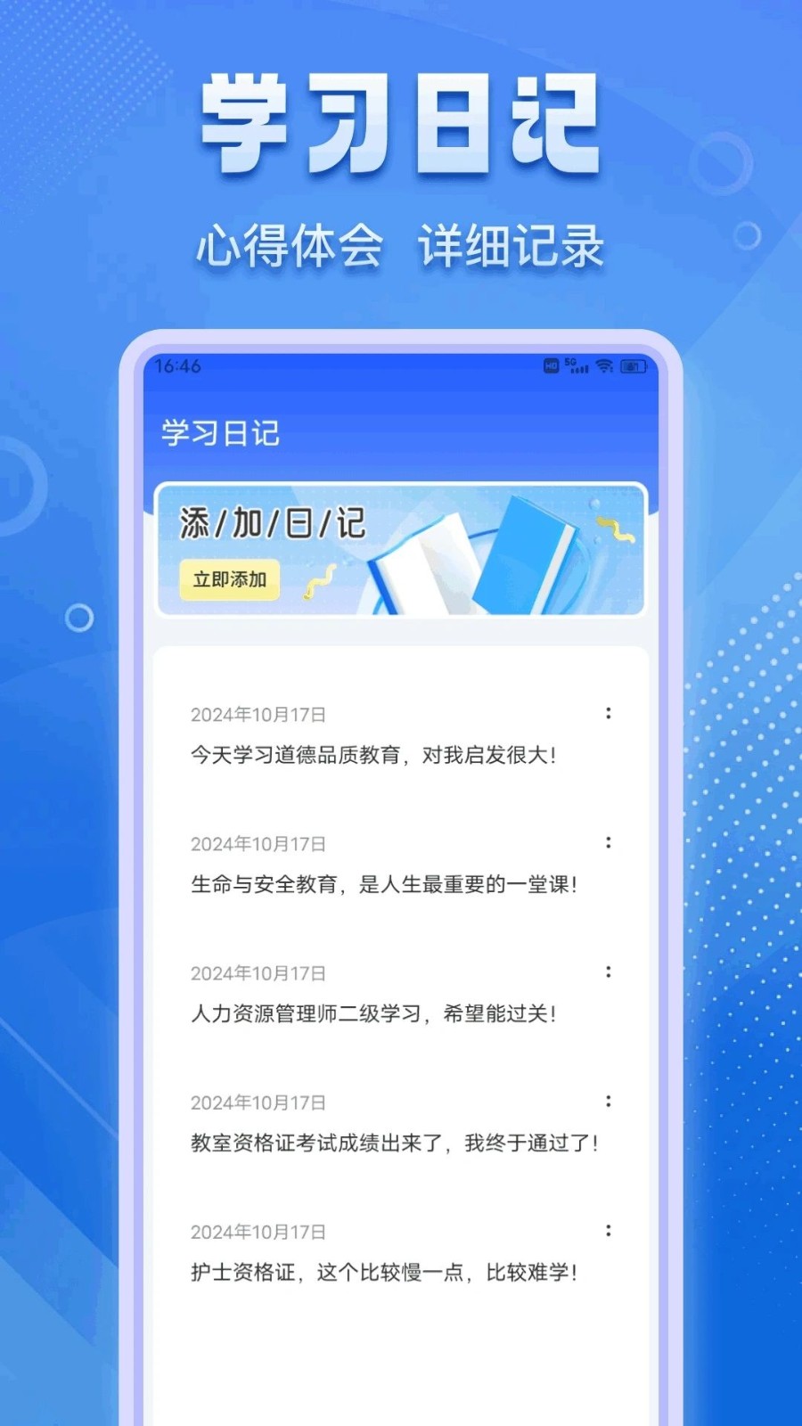 2、还有学习日记功能,可详细记录心得体会,让你学习事半功倍。