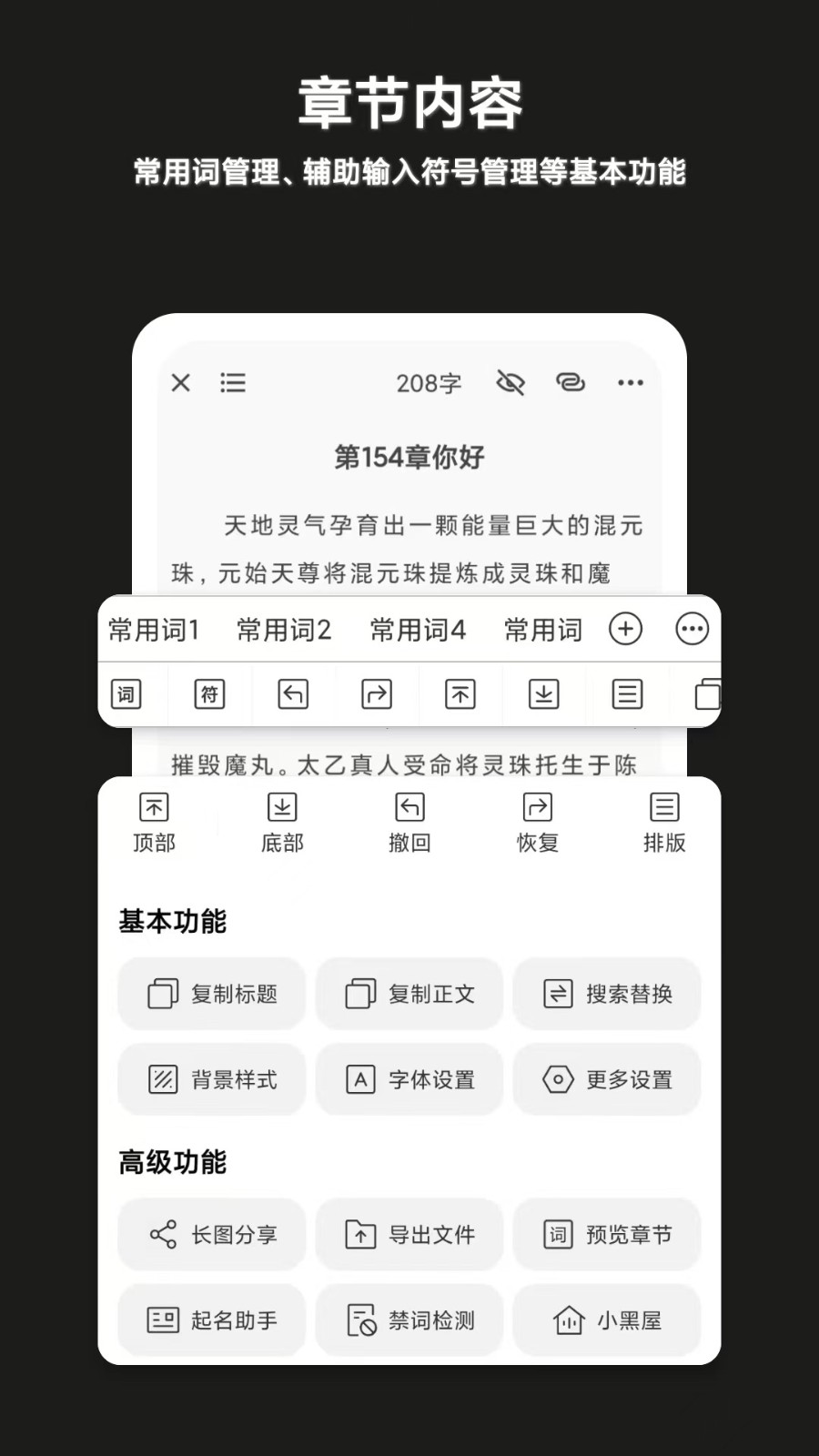 3、多种功能方便统计字数和管理自己的作品。