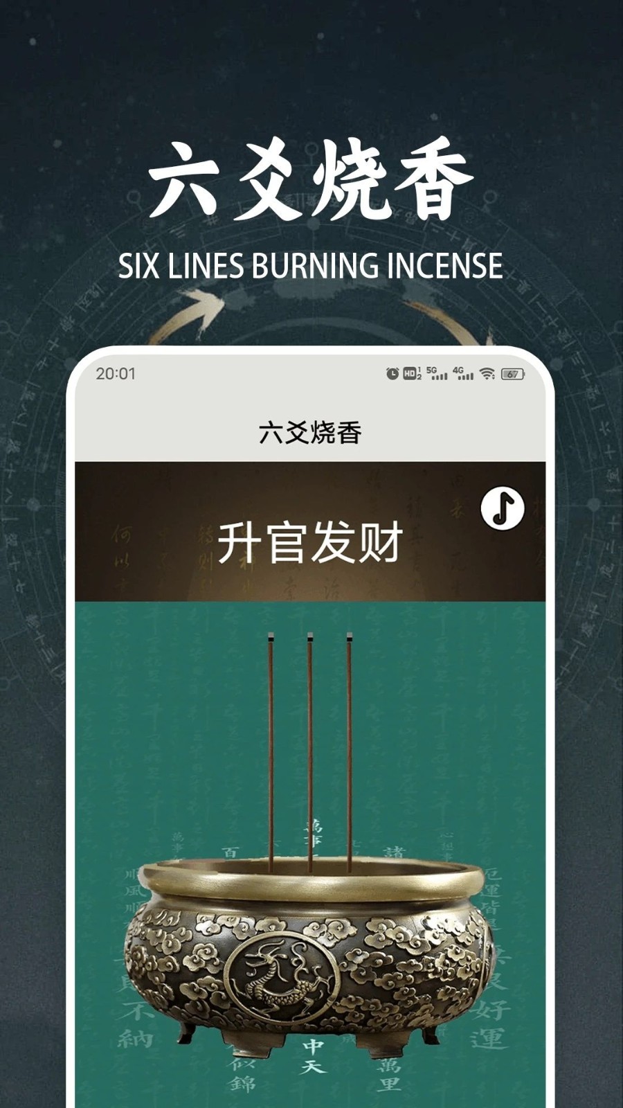 3、各功能板块划分明确,有六爻八卦的知识展示、冥想、烧香、取名等。
