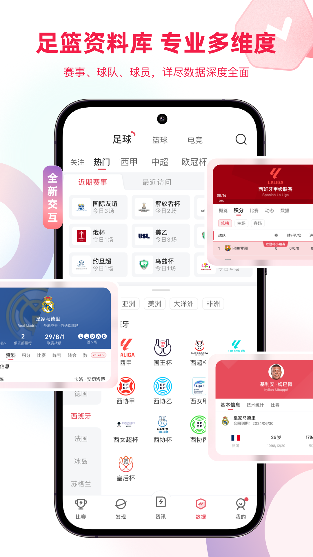 【足篮资料库】供用户查询各类球队、球员、赛事资料,来这里查询你喜爱的球队、球员的资料吧