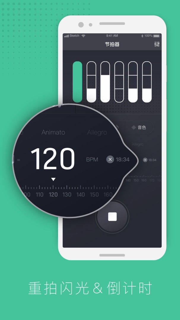 4、内置13种节拍器音色,使用高级实时回放技术,提供高精度的节拍。