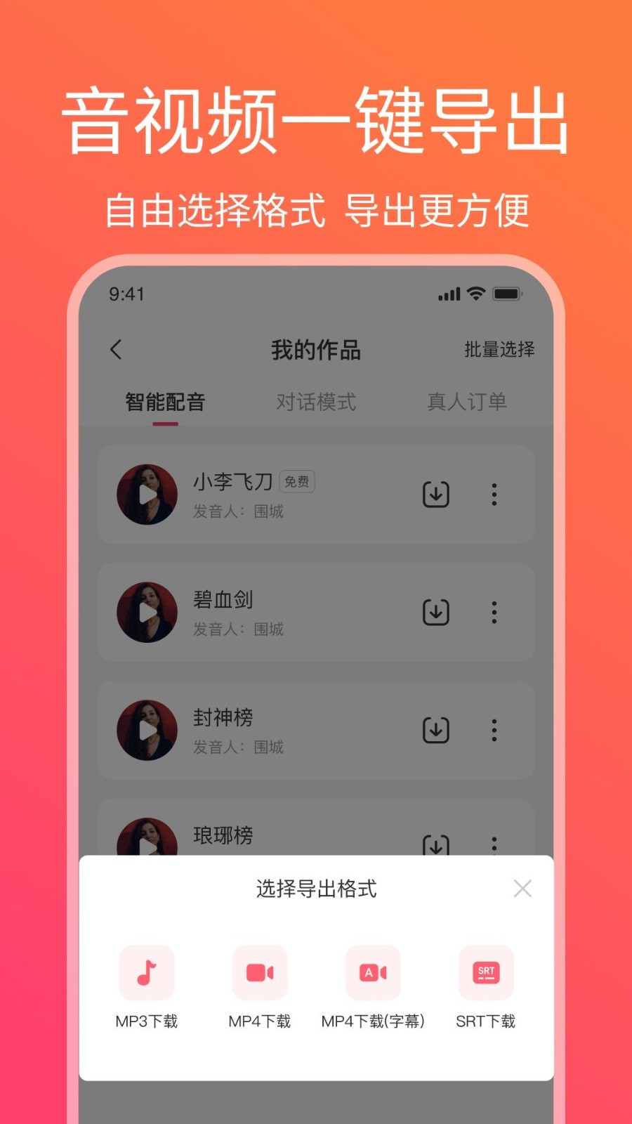 3、借助强大的语音合成技术,自动化合成配音内容,提供高效的配音服务。