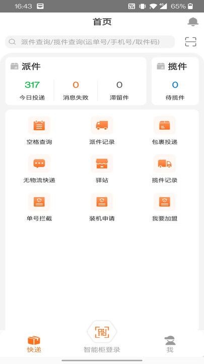 4、智能取件,获取详细的派件信息,快速查询快递信息,管理快递派送办公。