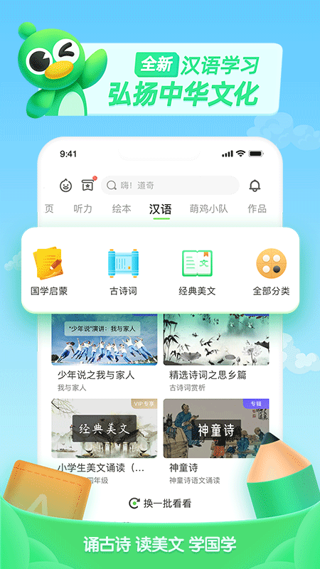 30多个版本、21000本教材统统做成动漫视频,孩子通过配音随时随地学习,还能加入学校专区,与老师同学共同交流进步。