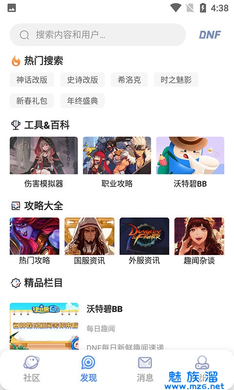在这里,可以获取到DNF国服、韩服、日服、国际服的—手前瞻资讯,阅览全职业的百科全书、团本超详细图文攻略、COLG官方视频栏目等精彩内容。