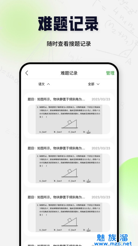 3、还可以进行难题记录,随时使用软件轻松的拍照搜题,可以快速掌握正确的解题方法。