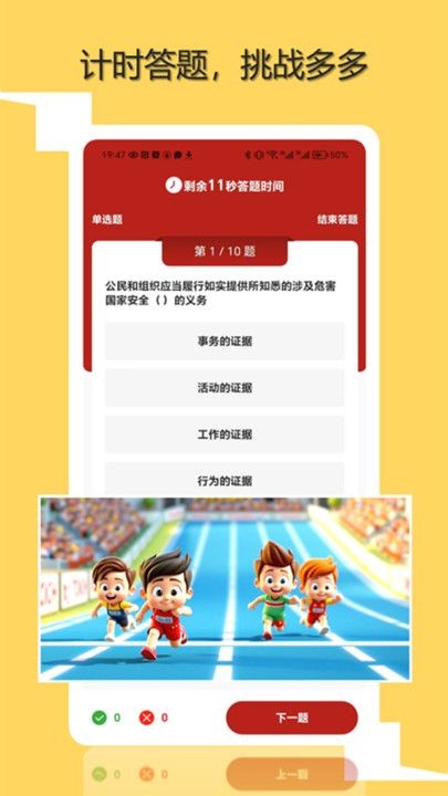 倒数读秒式的速度答题,趣味与难度并存,锻炼阅读能力、反应速度,与亲朋好友一起挑战,享受变强乐趣。