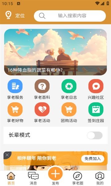 伴颐年非常实用的老年生活服务软件,这里面有着许多便捷功能等你使用,能够帮助你了解到更多的健康知识,帮助你更好的管理身体健康,伴颐年当中还远程医疗服务,能够在线资讯医生,获取到专业医疗建议等,这里面还有老年社区功能,可以在这里面一起交流哦!