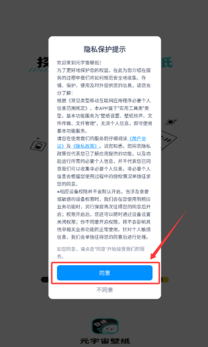 1、点击隐私提示中的同意按钮,开始使用。