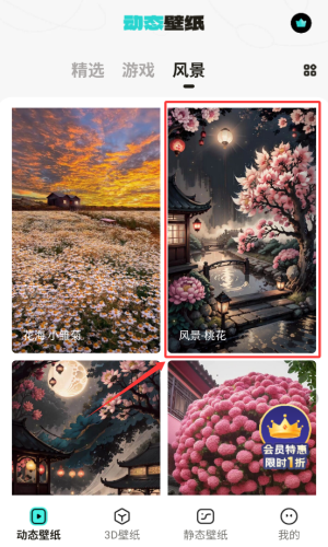 4、在风景图中,点击会员特惠的粉球壁纸。