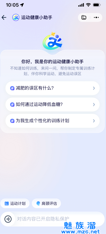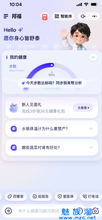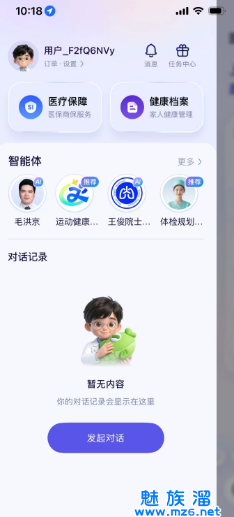 4、手指向右滑动屏幕,用户可以自己选择符合现有身体状况的智能体,进行1对1资讯。