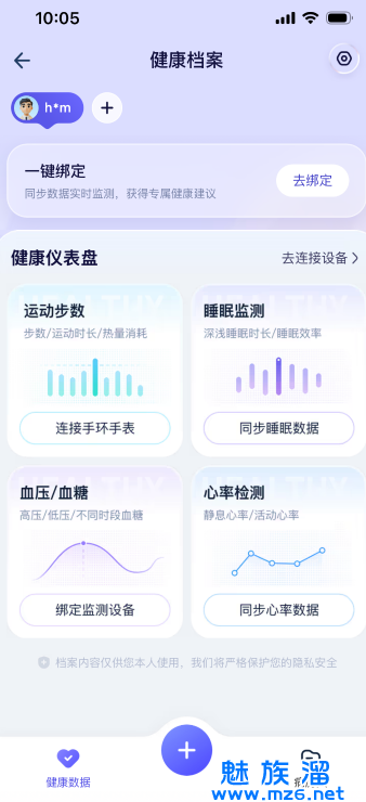绑定九大品牌智能设备,同步运动量、心率、睡眠、血压等数据。
