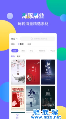 海豚展业是一款十分不错的移动办公软件,通过软件去更好的进行办公,为你提供了多方面你的内容,让你能够在其中选择更好的模板制作海报,还能够通过软件去制作自己的个人名片,从而为你提供超级棒的办公感受,随时为你解决各种办公时候遇到的问题,让你轻松的办公。