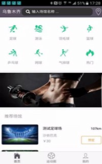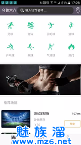 第一步:首页运动频道选择项目和区域,系统检索出相关所需场馆。