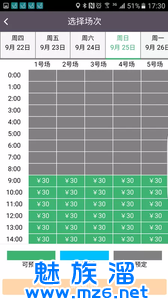 第三步,选择日期、场地。白色部分均为可预订场地。在右侧填写姓名、手机号码,提交订单。