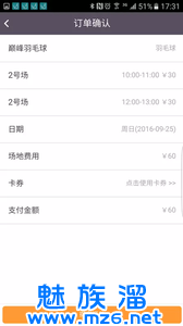 第四步,完成付款,会将验证码发送到用户手机,凭验证码去场馆运动。