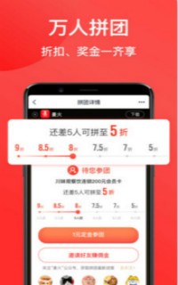 全民拼团:扫码点餐发起拼团,商家会员卡充值低至3.5折起,还有返现、邀请奖金拿不停