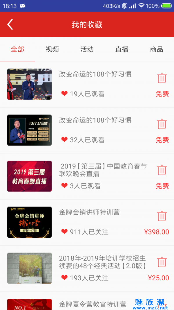 4、家庭教育学院app里直播课程和活动的状态都有其对应的标签,可获得更多信息。