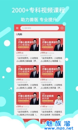 这里集中了各种核心板块,可以查到班级、课群、上百套专业课程、十几种专科课程、 数十种实操课程;互动直播,专家讲座,在线互动;宠医兽医视频基础知识,临床操作。