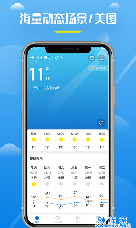 天气背景:真实城市美景、自然风光、女神萌宠多版主题随心切换并支持私人定制背景;