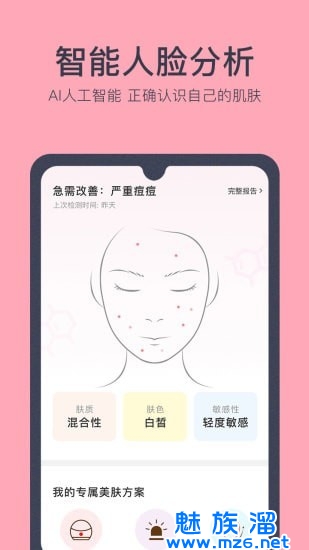 1、轻松检测自己肤质,为你提供科学性指导方案,帮助你改善肌肤