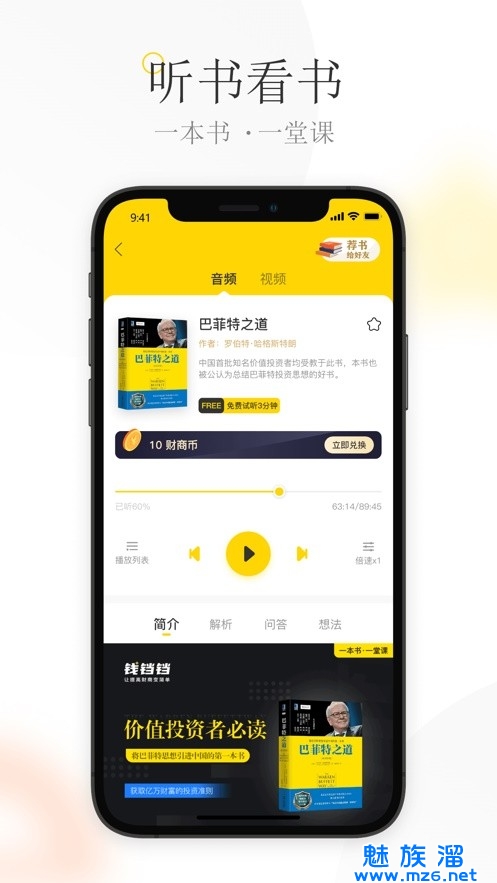 钱铛铛是一款关于线上学习的APP,平台主要教学商务思维与理财思维,这是一款基于互联网金融教育下学习的培训社区,皮病态致力于打造创新有趣的金融教育,不管你在什么地方只要你想学习就可以随时随地学习提升您对金钱的认知能力,财富的不断积累能力,财富积累不靠运气靠的是不断提高的意识,快来跟我一起学习理财吧。