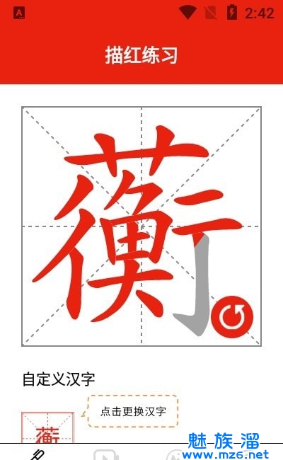 2、其中描红功能清晰明了的介绍了每一个汉字练习的细节;